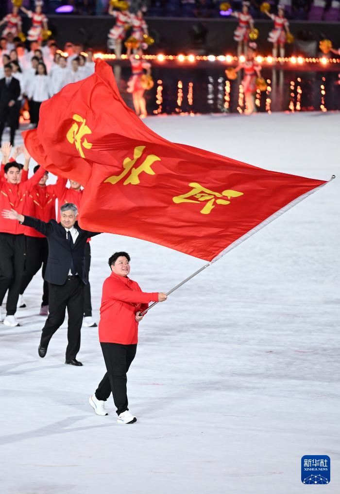 11月9日,河北省体育代表团旗手巩立姣在入场仪式上。