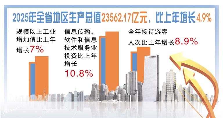 本报讯(记者 牟绍莉 王怡)1月21日,记者从省政府新闻办召开的新闻发布会上获悉,根据地区生产总值统一核算结果,2025年全省地区生产总值23562.17亿元,按不变价格计算,比上年增长4.9%,经济运行总体平稳、稳中有进。