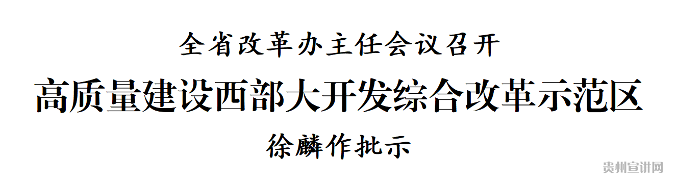 会议要求,全省改革办系统要深入贯彻中央深改委和省委深改委部署要求,紧紧围绕建设西部大开发综合改革示范区战略定位,多做创新性探索,多出制度性成果,努力创造更多可复制、可推广的经验。要深入落实党的二十大决策部署,聚焦中国式现代化的贵州实践,抢抓新国发2号文件机遇,围绕主战略主定位改革攻坚,切实抓好国家授权改革清单事项落实,扎实推进要素市场化配置、国企国资、营商环境和“富矿精开”、开发区管理、投融资、生态文明、数据资源化资产化、乡村振兴、旅游管理、人力资源开发等重大改革事项,统筹推进机构改革、民主法治、文化社会、党的制度建设和纪检监察等领域改革任务,认真做好“一年一创新”“一市一示范”“一县一试点”,高质量建设西部大开发综合改革示范区。要结合主题教育大兴改革调查研究,坚持立破并举抓改革试点、标本兼治抓改革实施、统分结合抓改革协调、奖惩并用抓改革督察、点面协同抓改革宣传,扎实开展重大改革落实情况“回头看”,稳步推动各项改革决策部署落地见效,形成建设西部大开发综合改革示范区的强大合力。