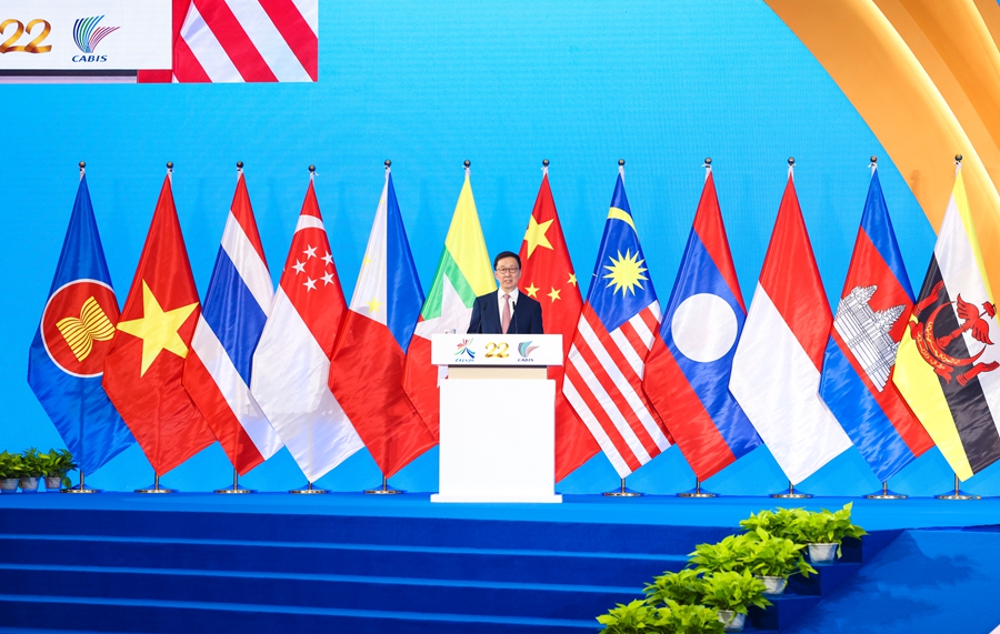 9月17日上午,国家副主席韩正在广西南宁出席第22届中国-东盟博览会暨中国-东盟商务与投资峰会开幕式并致辞。新华社记者 丁林 摄