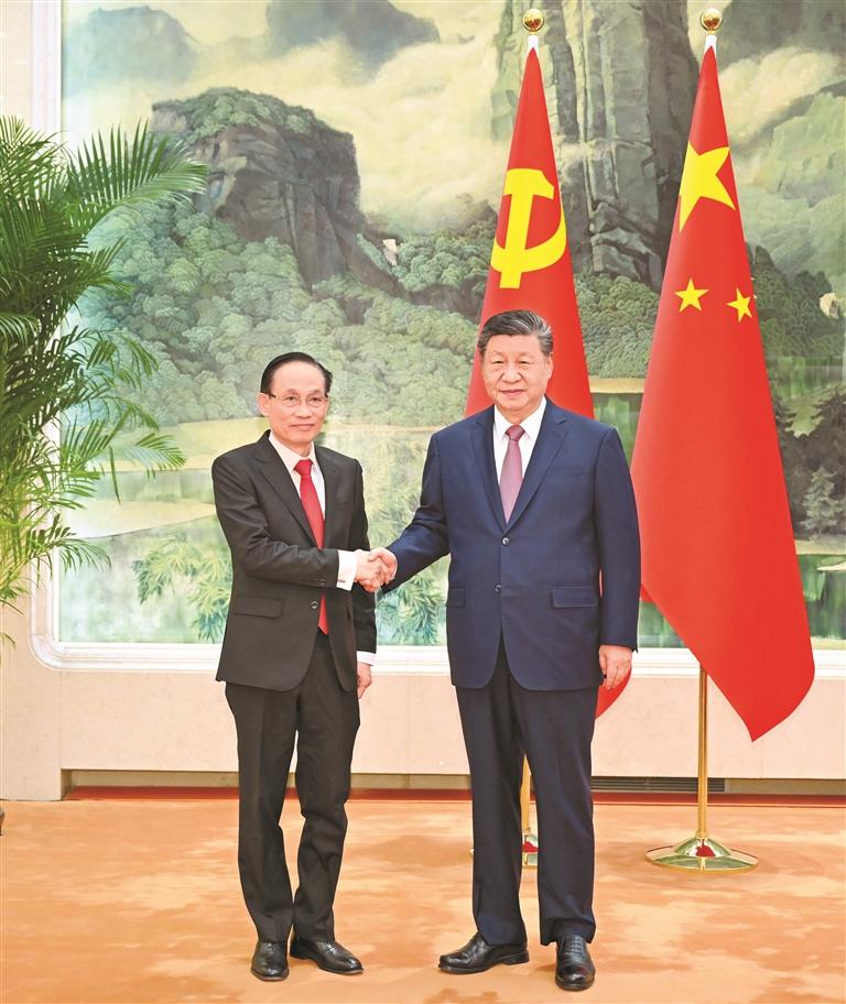 习近平指出,中越两党坚持相互通报彼此重大政治议程的优良传统,体现了中越“同志加兄弟”的特殊友好情谊和高度政治互信。不久前,我同苏林总书记通话,围绕进一步推进具有战略意义的中越命运共同体建设深入交换意见,达成重要共识。相信在以苏林同志为首的越共中央坚强领导下,越南党、国家、人民一定能够胜利完成越共十四大确定的各项目标任务。