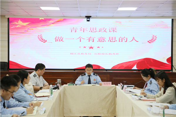 思政课堂。县局党委委员、纪检组长杨秀祥以《做一个有意思的人》为题为青年干部上一堂“思政课”。他围绕“积极主动做一个勤奋的青年、脚踏实地做一个敢于磨练的青年、坚持不懈做一个有恒心的青年、懂得感恩做一个有温度的青年”,讲述了自己的从税历程,勉励青年干部勤学勤思勤干,敢想敢闯敢拼,用最大努力成为税收领域的行家里手,在最美的青春年华努力奋斗,成就最好的自己。