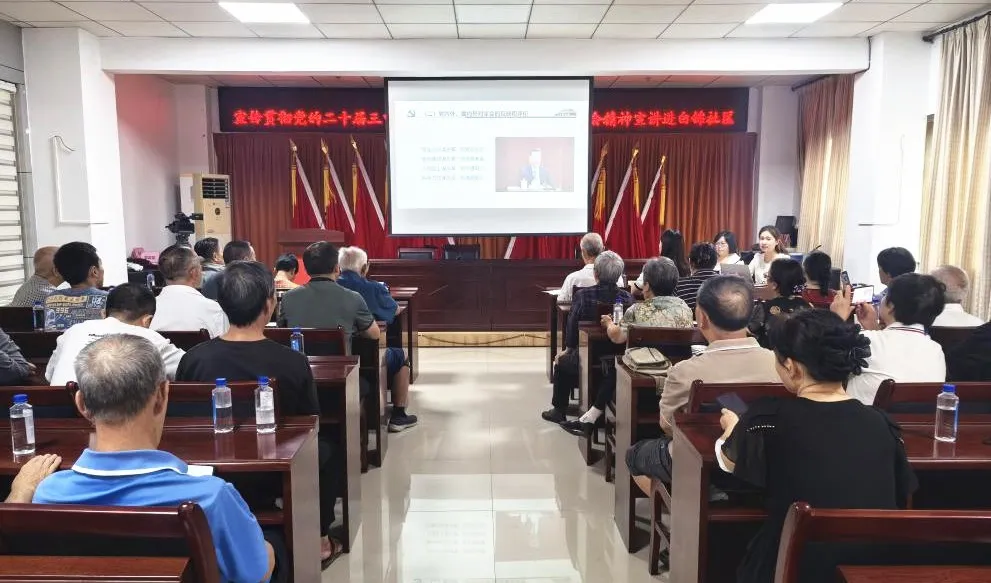 在南白街道白锦社区,省委党校吕红云、李阳教授通过典型案例与图文并茂的方式,围绕党的二十届三中全会整体情况,学习领会习近平总书记在党的二十届三中全会上的重要讲话精神,全面准确理解进一步全面深化改革重大举措及全力以赴抓好全会精神贯彻落实四个方面对党的二十届三中全会精神作了系统阐述和深入讲解。