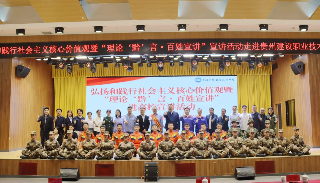 4月14日,弘扬和践行社会主义核心价值观暨“理论‘黔’言·百姓宣讲”进高校宣讲活动在贵州建设职业技术学院举办。来自基层一线的7支宣讲队伍用鲜活故事阐释时代道理,为全校400余名师生带来了一场有思想高度、有实践深度、有感人温度的精神盛宴。