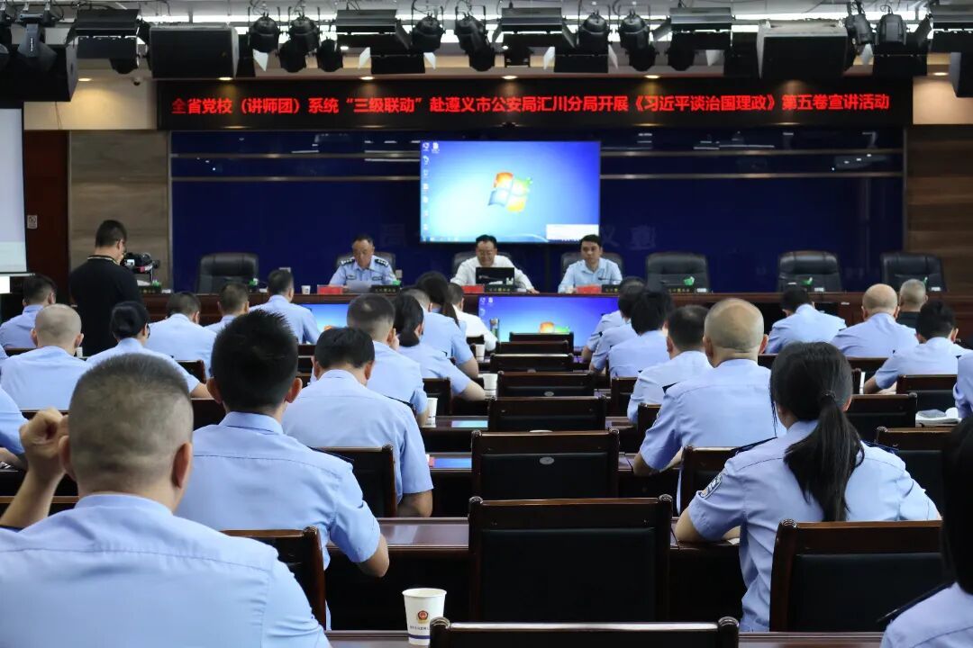 在遵义市公安局汇川分局,省委党校教师陈正源和阮正贤,以“谱写新时代中国宪法实践新篇章——《习近平谈治国理政》第五卷重点篇目解读”为专题进行宣讲,系统回顾了《习近平谈治国理政》前四卷的重要意义,围绕第五卷的理论创新与实践发展作了深入阐释,并深入剖析我国宪法制度,进一步增强民警对宪法精神和法治建设的理解。汇川区人民政府副区长、区公安分局局长吴弟松及其他党员领导干部120余人参加。
