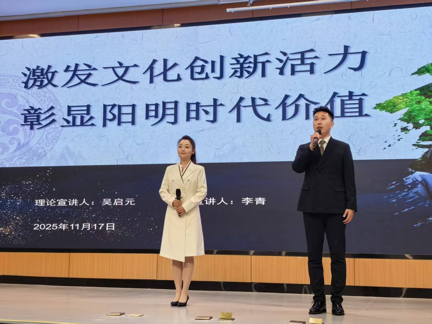 活动采用“理论宣传二人讲”的形式进行,通过“1个主持人串场+6支宣讲队宣讲+N个群众谈感受”的宣讲方式,突出小切口、分众化、对象化,让宣讲更具吸引力、感染力。现场,6支“理论宣传二人讲”队伍依次登台,从不同角度对全会精神进行具象化、生动化解读。毕节市大方县的胡丽莎、杜苓以《一面旗,一条心》为题,讲述了红军长征途中与黔西北苗家儿女结下的深厚情谊,阐释了红色文化中蕴含的民族团结力量;乌当区的何俊、聂芸以《三线铸魂 黔程奋进——从峥嵘岁月到新时代的精神》为题,回顾三线建设的峥嵘岁月,解读“艰苦创业、无私奉献、团结协作、勇于创新”的三线精神及其时代价值;安顺的宋枢贤、黄继以《文化绵长美,家国六百年》为题,展现屯堡文化六百年的传承与魅力,揭示中华优秀传统文化的生生不息;贵旅集团的何兴、罗倩以《贵州风采践嘱托,文旅发展印初心》为题,分享贵州文旅深度融合、打造世界级旅游目的地的创新实践;清镇市流长苗族乡的赵祝娟、王艺结合亲身经历,在《苗乡咖啡香,青山变“金山”》中讲述了当地依托生态优势发展特色文化产业、助力乡村振兴的故事;修文县的吴启元、李青则以阳明文化为例,探讨如何在新时代激发文化创新创造活力,彰显传统文化的时代价值。