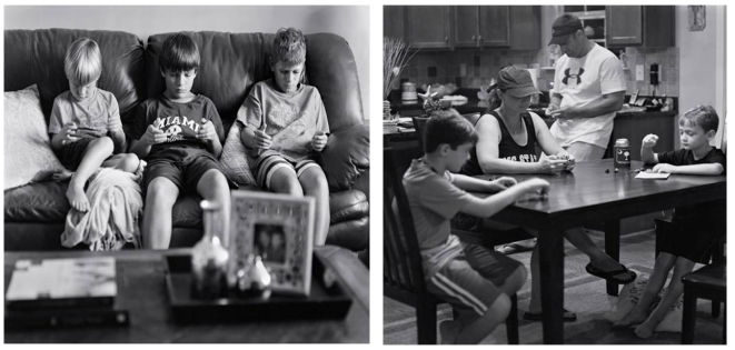图片的摄影师Eric Pickersgill用写实的手法真实还原了生活中的场景,图片反映了智能手机和平板电脑对我们生活的影响,说明科技已经成为了人们之间沟通的一堵墙,为此他呼吁我们对朋友和家人要有更多近距离的交流。