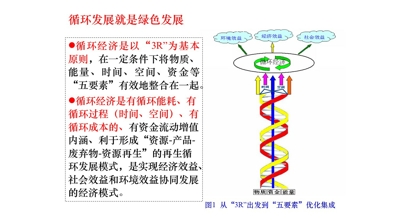 循环发展就是绿色发展。循环经济是以“3R”为基本原则,在一定条件下将物质、能量、时间、空间、资金等“五要素”有效地整合在一起。循环经济是有循环能耗、有循环过程(时间、空间)、有循环成本、有资金流动增值内涵、利于形成“资源-产品-废弃物-资源再生”的再生循环发展模式,是实现经济效益、社会效益和环境效益协同发展的经济模式。
