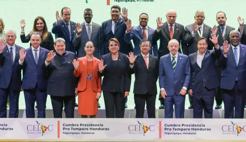 ▲2025年4月,在洪都拉斯的拉美和加勒比国家共同体第九届峰会现场,部分与会者合影留念。