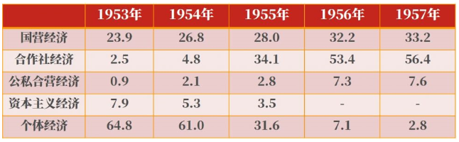 “一五”时期国民收入中各种经济成分所占比重(%)