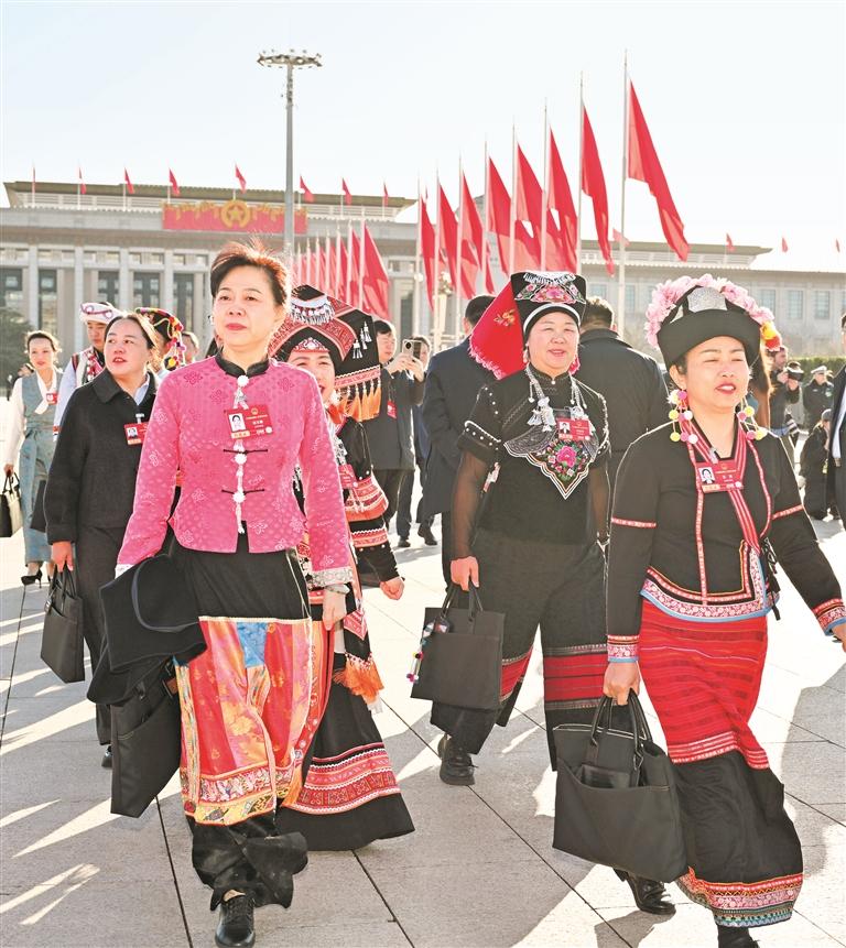 谋发展、谈创新、问民生、促团结……一场场热烈讨论、一次次真诚交流,党中央治国理政的实践在对基层实情的体察中进一步丰富,源自广袤大地的民智民声百川奔流般汇入国家发展蓝图,古老民族对美好未来的奔赴信心满怀——这是共商国是殿堂中不断写下的新篇,更是全过程人民民主真谛的生动诠释。