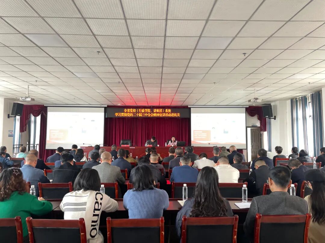 10月16日下午,省市县党校“三级联动”学习贯彻党的二十届三中全会精神宣讲走进开阳。此次宣讲由省委党校、市委党校联合组建宣讲团,以“进机关”“进校园”“进村(居)”“进企业”“进社区”“五进”为载体,通过“理论宣传二人讲”形式开展宣讲,持续掀起学习党的二十届三中全会精神热潮。