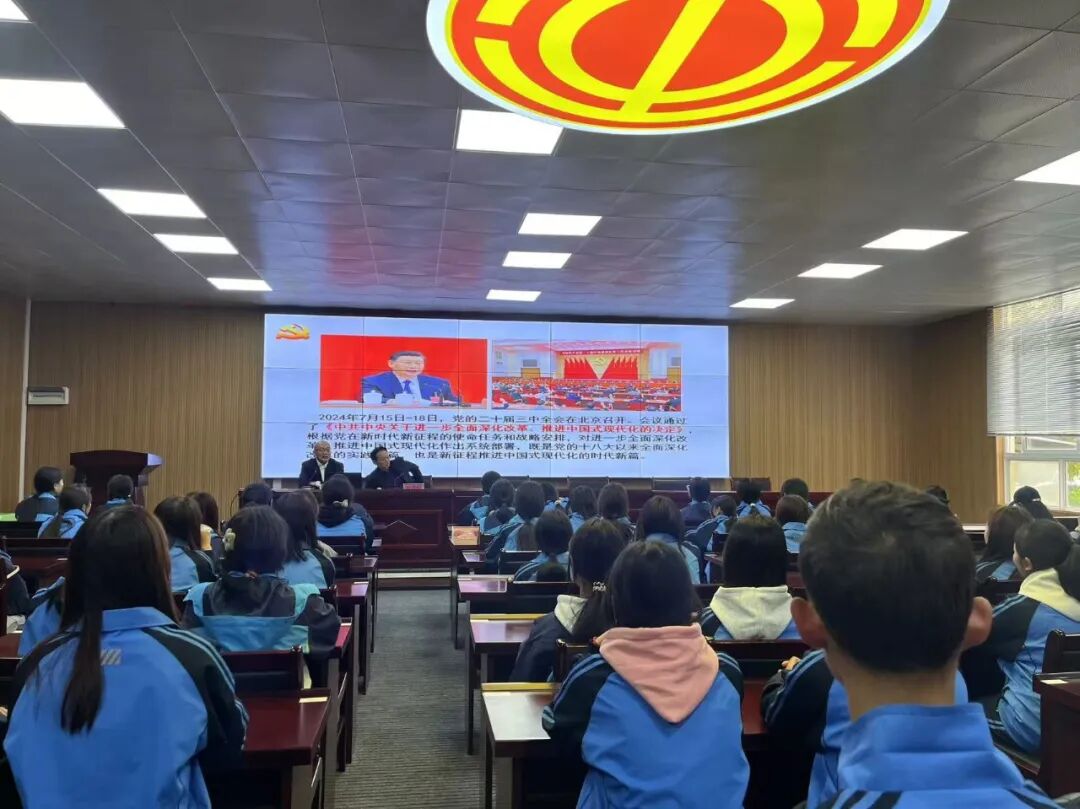 在长顺县第一小学,宣讲团成员以《紧紧围绕推进中国式现代化进一步全面深化改革——深入学习宣传贯彻党的二十届三中全会精神》为题,从党的二十届三中全会整体情况、全面准确理解进一步全面深化改革重大措施、全力以赴抓好全会精神贯彻落实进行宣讲,为全县中小学、乡镇中心及以上学校校长等作解读辅导,推动全会精神在教育系统中落地见效。