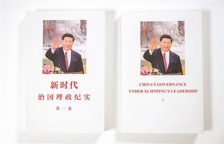 这是《新时代治国理政纪实》第一卷中英文版。新华社记者 才扬 摄