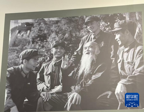 冬日,赤水河缓缓流淌,树木掩映着灰白砖墙和古朴木梁。位于贵州省遵义市习水县土城镇的四渡赤水纪念馆里,几名游客在展厅陈列的一张老照片前驻足凝视。照片里,四个年轻人围着一位白发长髯的老红军,他笑着远眺,仿佛在遥望当年的战役。