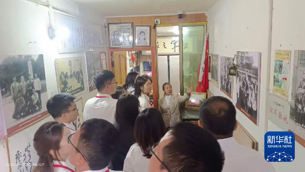 林成英给前来参观的团队讲述老红军的故事。新华社发