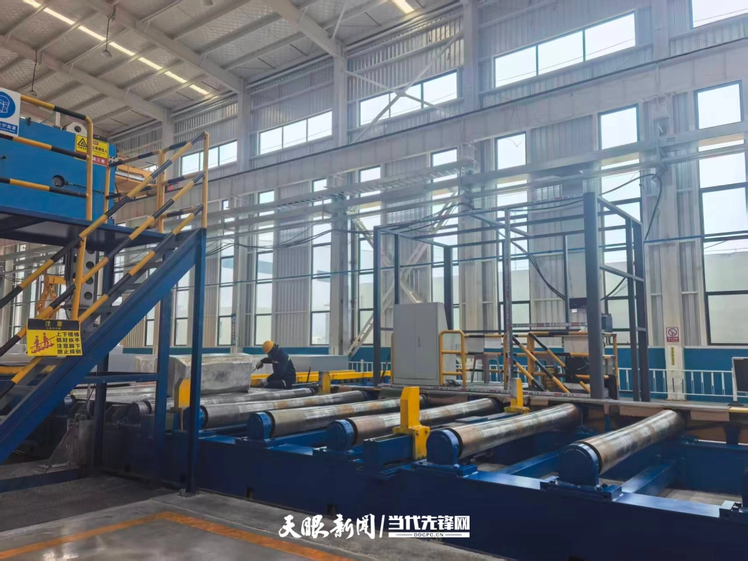 在隔壁车间,铸轧分厂生产厂长康文达正带人核对生产线防尘棚的安装细节。一旁崭新的铸轧生产线已完成单机调试。“下周就开始联动调试,为新能源铝基材料首条新生产线投产冲刺。”康文达的目光仍落在设备上。