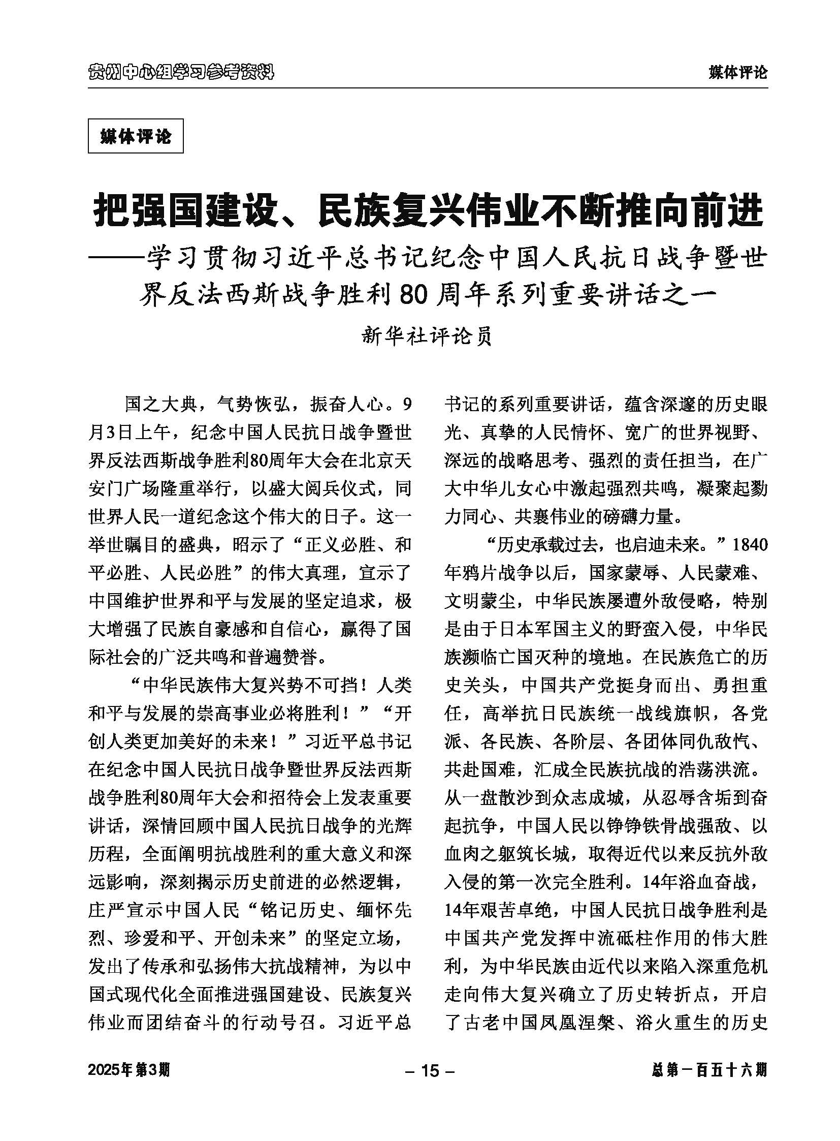 贵州中心组学习 参考资料 — 2025年第3期