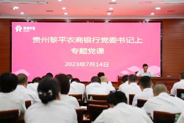 多彩贵州网讯 为认真贯彻落实上级党委关于主题教育的安排部署,推动主题教育持续升温,7月14日,黎平农商银行党委书记、董事长覃礼军以“感悟思想伟力汲取奋进力量全力推进黎平农商银行高质量发展”为主题,为黎平农商银行党员干部讲授主题教育专题党课。黎平农商银行领导班子、各党支部书记、中层干部、机关全体党员和离退休党员代表共计66人参加会议。