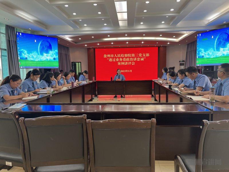 2023年以来,盘州市人民检察院坚持抓实融为一体的政治和业务建设,紧紧围绕“七讲七看”内容,持续开展“透过业务看政治讲忠诚”活动,在做实“从政治上看”上下功夫,以高质量党建引领检察工作高质量发展。
